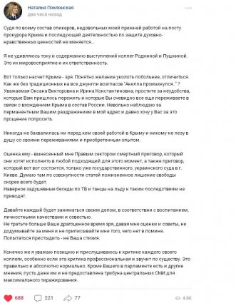 "Судя по всему состав спикеров, недовольных моей прежней работой на посту прокурора Крыма и последующей деятельностью по защите духовно-нравственных ценностей не меняется...