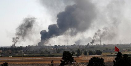Турецкая армия таки немного погоняла курдов в Рожаве, но все ограничилось небольшой территорией. Напуганные курды, которых уже традиционно предали американцы, побежали за защитой к "кровавому тирану Асаду", который подгреб под себя кусок Рожавы.