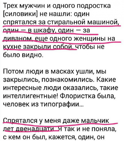 Безумству смелых пою я славу, и слава Богу, что "люди в масках", поставив в ходе тотального шмона всю хату на уши, ушли, не найдя смельчаков. Но кое-что понять сложно. Нет, одинокий пацаненок 12 лет от роду как раз классика (куды ж без Гавроша?), и мужик в шкафу - классика,