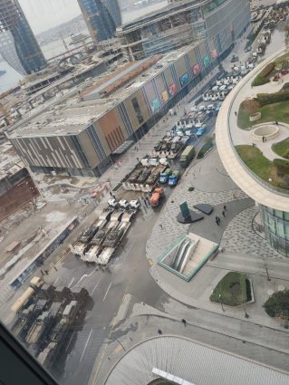 Трофейная армянская военная техника ожидающая парада в Баку.
