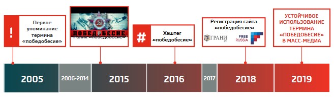 2018 - Запуск сайта «Победобесие». Наращивание активности по распространению термина и приданию ему статуса устойчивого оборота. Применение к спортивным событиям.Завершение «перехода» из социальных сетей в средства массовой информации.