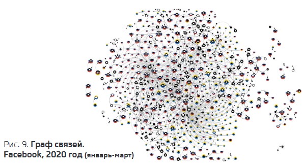 Анализ графа связей аккаунтов, публиковавших сообщения с термином «победобесие» в 2014 (когда началось массовое распространение термина) и январе-марте 2020 года в социальной сети Facebook, позволяет сделать следующие выводы: