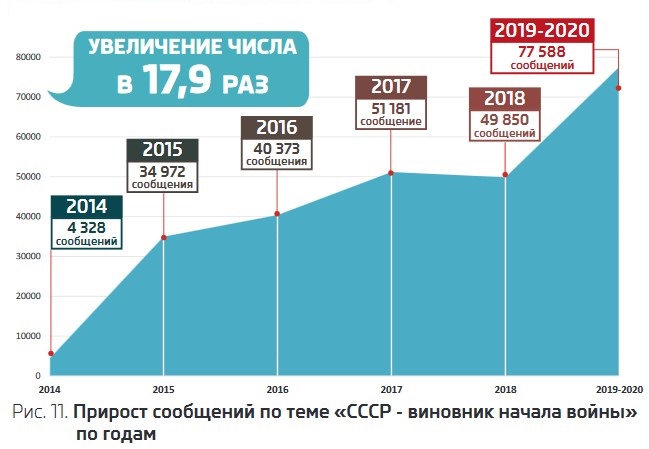 В год 75-летней годовщины Победы в Великой Отечественной войне особенно активно распространяются обвинения в адрес СССР в развязывании военного конфликта, используются тезисы о «союзе Сталина и Гитлера», о роли «Пакта Молотова-Риббентропа» и другие. Эти темы интенсивно используются в политических целях, открывая возможность для различного рода общественных деятелей и сообществ создавать с их помощью новую информационную повестку, основу которой составляют недостоверные доводы и факты.