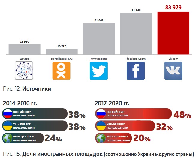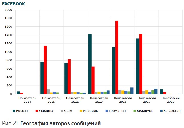 В 2015 г. лидирующее место по числу негативных сообщений занял Facebook. Интересно, что именно в Facebook число иностранных аккаунтов, негативно пишущих о роли СССР во Второй мировой войне, почти в 2 раза больше, чем российских. Это даёт основания полагать, что социальная сеть участвует в продвижении этой повестки.