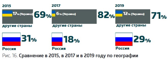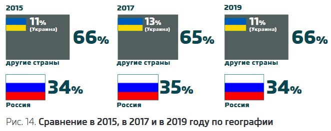 При изучении географической принадлежности авторов самых популярных платформ установлено следующее: