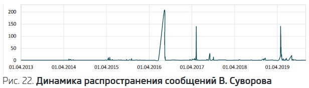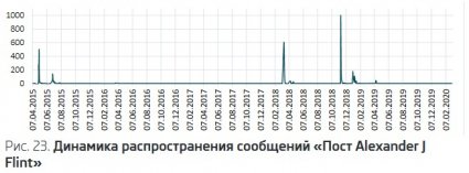 Некоторые публикации в рамках данной темы распространялись особенно активно. Так, посты пользователей «В. Суворова» и «Alexander J Flint» в Facebook ежегодно актуализируются, дополняются другими пользователями, используясь для поддержания негативной информационной среды.