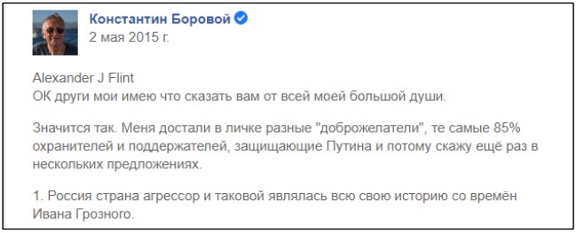 Самым цитируемым сообщением в рамках данной темы стал текст пользователя «Facebook» «Alexander J Flint» (https://www.facebook.com/Johnflint1985).