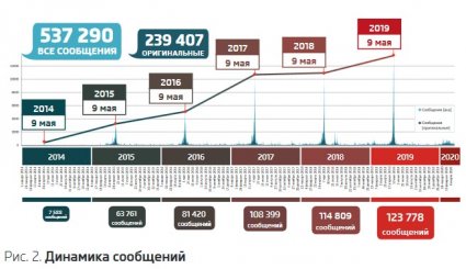 С 2014 года 256 тысяч пользователей опубликовали сообщения с термином «победобесие» в социальных медиа, в аккаунтах СМИ и различного рода сообществах.