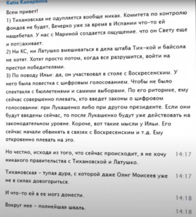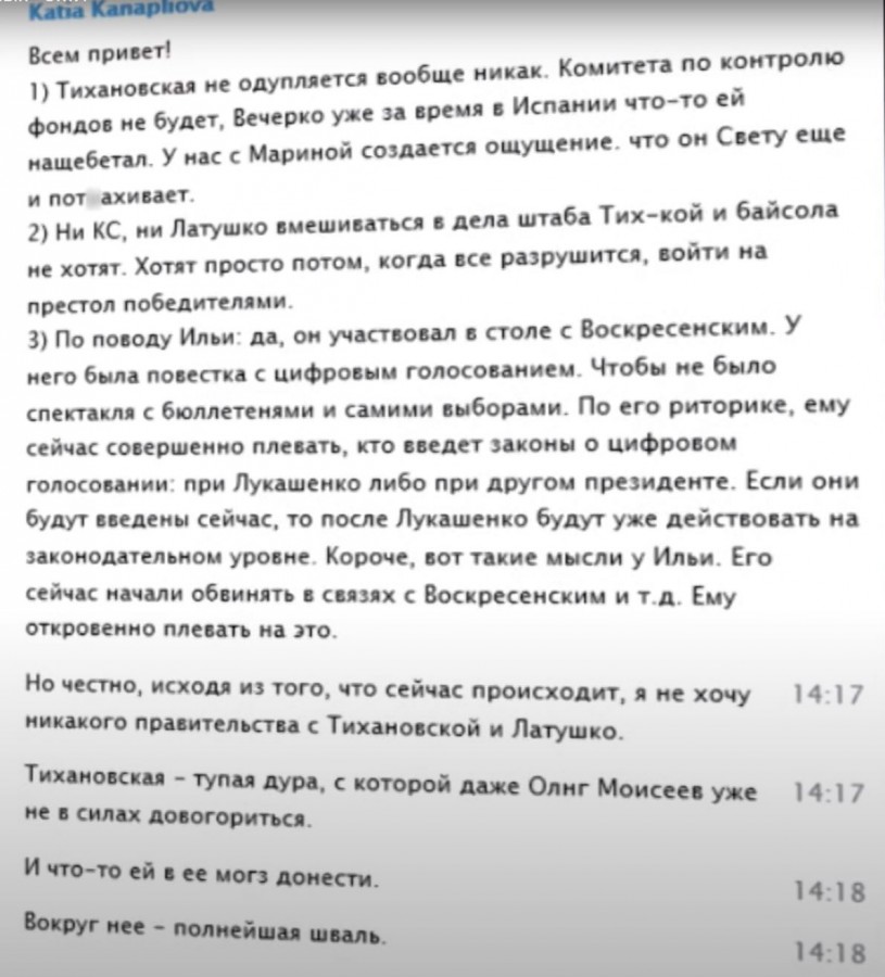 Ведущий этих роликов конечно там по полной перегибает с обличительным пафосом, но по существу, материалы конечно просто убойные, особенно когда персонажи обсуждают, как сливать Тихановскую, Латушко и прочих и как получить доступ к фондам, куда доверчивые граждане сдавали деньги на поддержку белорусской оппозиции.