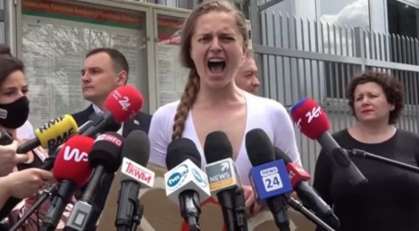 Портал EurAsia Daily: "25 мая в Варшаве, возле здания посольства Белоруссии прошла акция белорусских «революционеров» — соратников экстремиста Романа Протасевича, арестованного в Минске. «Гвоздем программы» данной протестной манифестации стал минутный и непрерывный крик «активистки» Яны Шостак. Перед тем, как набрать в лёгкие воздуха и начать свой истошный вопль, она на ломанном польском пояснила, что это её способ защитить Протасевича. В целом, эта громкая «речь» длилась около минуты, правда, где-то на середине, выступавшая ещё раз сделала вдох. Наблюдая за этой «эпитафией красноречию», невольно начинаешь думать, что Яна Шостак и есть сама «белорусская революция», окончательно впавшая в истерику. При этом западные «партнёры» даже в таком виде готовы её поддерживать. Интересно, что ни один представитель прессы во время этого «интервью» даже не поморщился. Корреспонденты продолжали направлять свои микрофоны в сторону кричащей Яны и дослушали её «речь» до конца с проникновенными лицами".