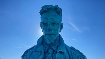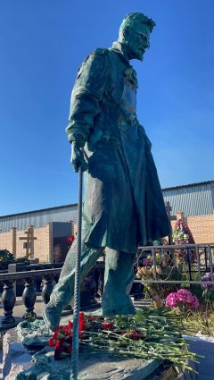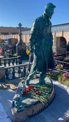 Ну, вот, благодаря нашим усилиям и помощи уважаемых людей, Эдуард, наш отец и учитель, вырос до двух с четвертью метра и забронзовел. В этой части его завещание исполнено.