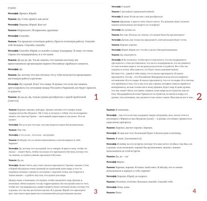 Саму аудиозапись издание не публикует — лишь стенограмму, не объясняя, откуда у него запись частного телефонного разговора двух помощников президента России во время переговоров по «плану мира».