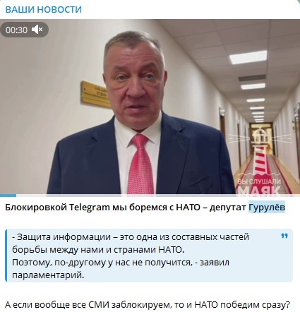 «Защита информации — это составная часть борьбы между нами и НАТО. Я понимаю, что это многим доставляет неудобство, в том числе и мне, так как есть свой телеграм-канал. Но есть веление времени, угрозы и на них надо реагировать».
