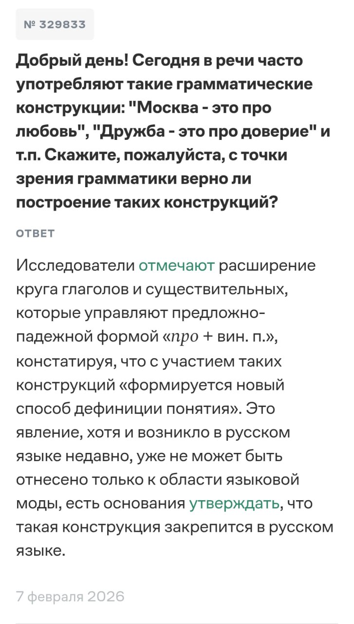В русском даже замена «о» на «про» до сих пор считается разговорной. Например, поговорить про жизнь вместо поговорить о жизни. А сказать дружба — это про доверие 10, 15 лет назад? Нонсенс.