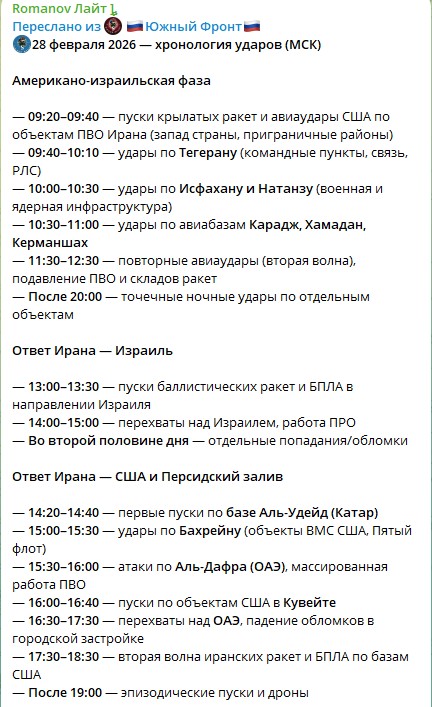 Владимир Романов: Итого на первые сутки (на 01.03.2026)