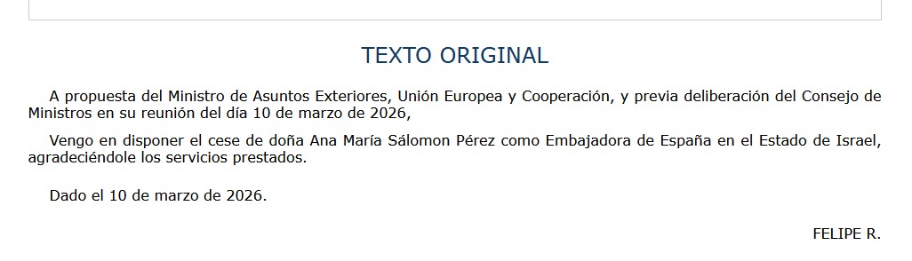 «Испания отозвала своего посла в Израиле» (МИД Испании).