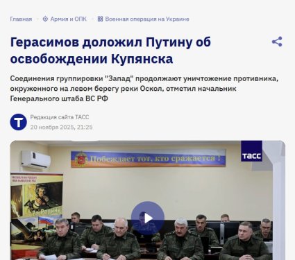 С одной стороны, согласно докладу начальника Генштаба Герасимова, Купянск был освобожден 20 ноября 2025 года.