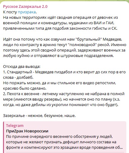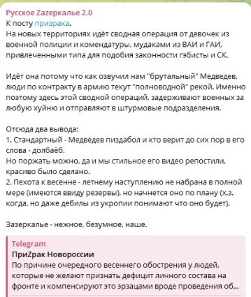 Всякие облавы на личный состав в неглубоком тылу с целью докопаться хоть до чего-то🤦‍♂🤦‍♂ - от белых номеров до установленного запрещенного телеграм (в запрещенном же смартфоне🤦‍♂) с целью хоть как-то насытить штурмовые подразделения - тоже системного результата не принесут, потому как: