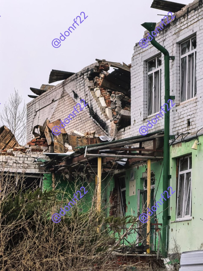 Это школа. Хутор Бердин Курской области РФ. Точнее село Разгребли, но местные говорят что Бердин. Им виднее наверное, не суть. Хорошая школа. Была. Дети учились, в Сети есть масса фото до. Сейчас вот так. Два плюса. Походя. Просто потому как на Бердин шли хохлы. А хохлы перед тем как идти выносят все общественные здания. Чисто на всякий. По принципу - а вдруг там военные укрываются. Что летело в школу я не знаю. На Химарс похоже. Не суть.