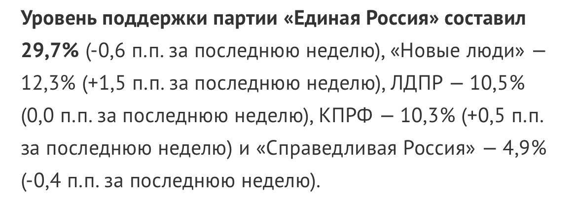 А на этом табло от ВЦИОМ довольно устойчиво сокращается разрыв между «Единой Россией» и ещё недавно проходившей под категорией «какие-то смешные клоуны» партией «Новые люди».