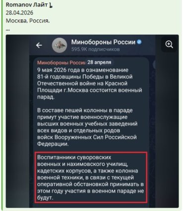 В какой момент ход СВО под командованием Герасимова дошел до той черты, когда мы не можем провести в сердце нашей Родины Парад Победы с соблюдением всех его обычаев и традиций?